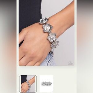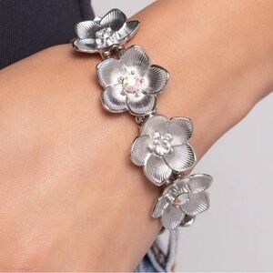 Elegant silver bracelet with floral design. Features clear crystal and iridescent rhinestones. ⚪️💎⚪️