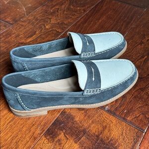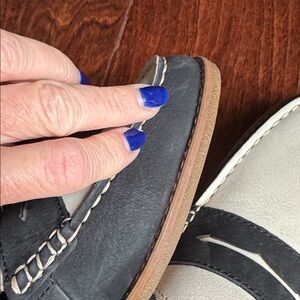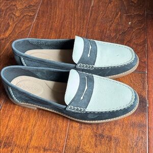 SPERRY Seaport Suede Penny Loafers, color Black/White, size 8.5.