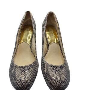 Michael Kors Snake skin Heels Gold Logo Hardware 4.5" Heel Sz 9M