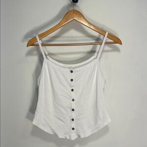 Elevate your wardrobe with this elegant white button-down camisole. Perfect for layering or wearing on its own.