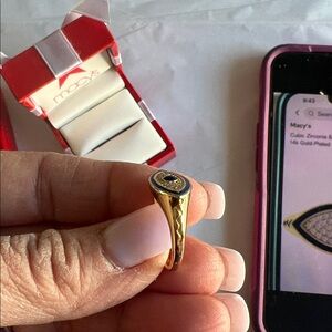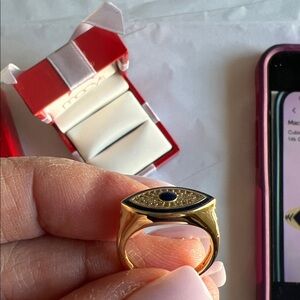 Cubic zirconia and blue enamel evil eye ring in 14k gold plated over sterling. Size 6 retail 120.00
