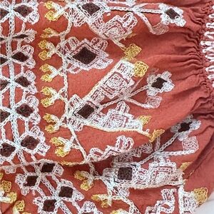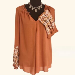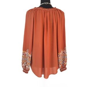 MAX STUDIO ~ Terracotta Loose Fit Long Sleeve Boho Style Blouse with Embroidery
