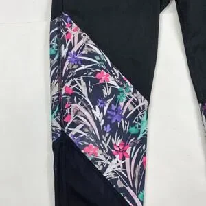 Fabletics Mid Rise Powerhold Leggings Mesh Black Floral Capri with UPF 50+ Womens Size Small