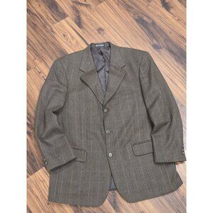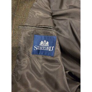 Stafford Lambswool Blazer Sz 43R Green Herringbone Plaid Sport Coat Elevated