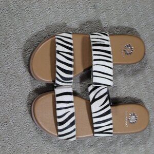 Yellow Box Women's Size 8.5 Blasius Zebra Striped Cow Hair Slide Sandals