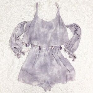 AE Purple Cold Shoulder Tie Dye Tassel Romper Sz S