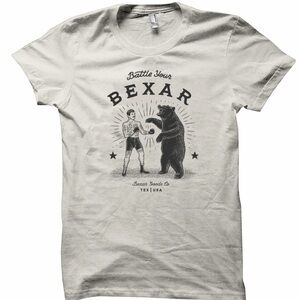 Bexar Goods Co Battle Your BEXAR Bear Graphic Tee L Indie Retro Texas Made
