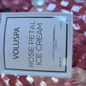 26 oz tin ..two wick ROSE PETAL ICE CREAM scented candle in a gorgeous metal tin
