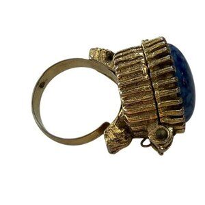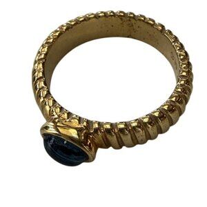 Blue stone and gold tone metal ring