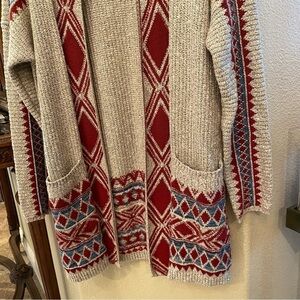 Pre-owned in great condition with no rips or stains. Women’s boho fun pattern open cardigan sweater. Great with jeans. Comes from smoke and pet free home.