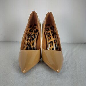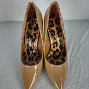Azalea Wang Dark Nude Patent Leather Pointed Toe Stiletto Heels Size 10 4.75”
