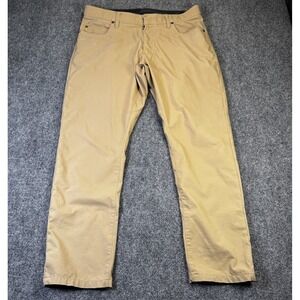 Kuhl Free Range Pant in Light Khaki, featuring a durable cotton-nylon blend with spandex for stretch. These outdoor pants include the signature Kuhlkurve fit, higher in the back and mid-rise in the front, with articulated knees and multiple pockets for utility. Brand new with tags, these long-length trousers are designed for comfort and performance in mountain environments.