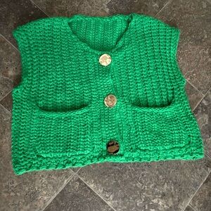 NWT Green Knit Vest with Gold Buttons