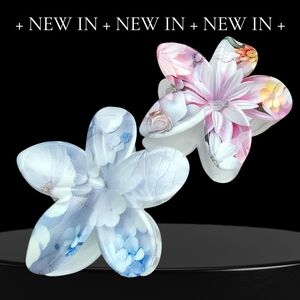 Set of floral hair claw clips. Features vibrant flower designs. Perfect for adding a touch of elegance.