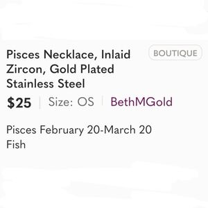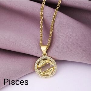 This gold tone necklace features a Pisces pendant with zircon accents, making it the perfect accessory for astrology lovers. Add a touch of celestial charm to your outfit with this piece.