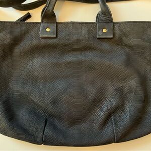 Clare V Black Snake Leather Tote Satchel Bag w/ Shoulder Strap