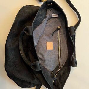 Clare V Black Suede Leather Tote Satchel Bag w/ Shoulder Strap