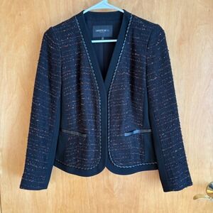 Lafayette 148 New York Petite Black Multi Color Tweed Trim Blazer Jacket Size 2