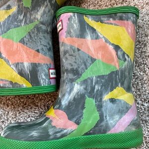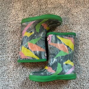Hunter Kids Boots Printed Rain Boots Green Multicolor Waterproof Boots Size 8