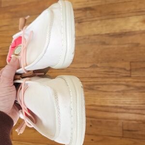 Cute and comfy, these Hey Dude Women's Chambray Slip On Shoes give you an easy boho look. Features include: Chambray material, elastic laces for easy slip on, lightweight sole, removable orange foam insole, cute stitched accents.