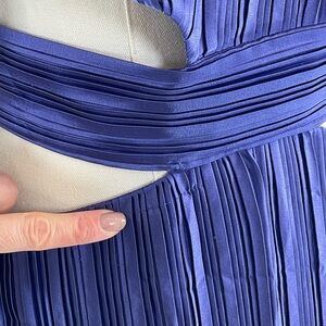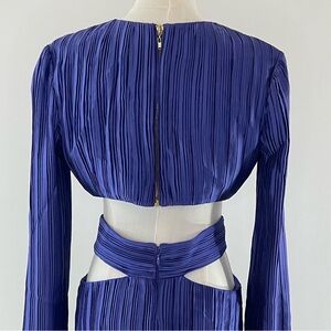 Turn heads in this long sleeve pleated gown by AIIFOS, where sharp waist cutouts meet a bold banded waistline. This one looks amazing on!