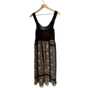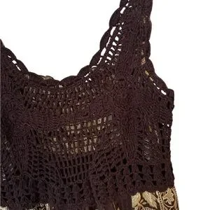 Zara Y3K Chocolate Sleeveless Babydoll Maxi Dress Crochet Front Floral Size S