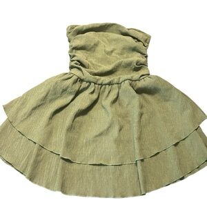 Keywords: strapless dress, mini dress, tiered dress, ruffle dress, party dress, cocktail dress, green dress, summer dress, womens dress, sleeveless dress, aline dress
