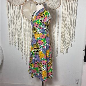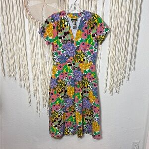 Nooworks Short Sleeve Eclectic Fit n Flare Midi Dress with Pockets L