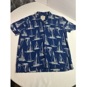 St John’s Bay L Blue Sailboat Print Hawaiian Shirt Short Sleeve Classic Fit