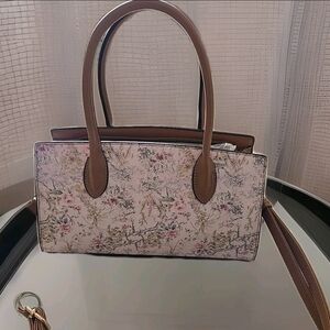 Le Bag Satchel Handbag Spring Floral Purse With Gold Accents Shoulder Strap NWT