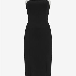 Elegant strapless midi dress with fold over detail. Zip back. The dress has stretch. Perfect for a wedding or semi formal event! NWT and non smoking home.