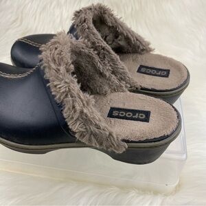 CROCS MULES COBBLER EVA INSULATED BROWN FUR LINED SIZE 8 Woman