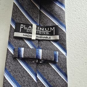 Elevate your style with this elegant striped tie. Featuring a classic black and blue design, it's perfect for any formal occasion.