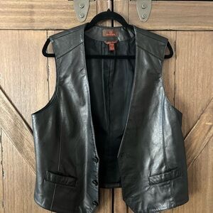 Danier Italian Leather Button Up Vest Black Size Large