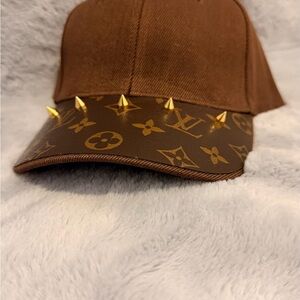 Brown Cap with Gold Studs and Louise Vuitton Canvas
