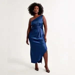 Abercrombie & Fitch One-Shoulder Satin Knotted Midi Dress Royal Blue Size XS