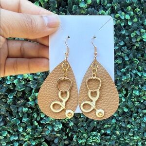 Handcrafted Nurse and Doctor Gold and Tan Teardrop Earrings