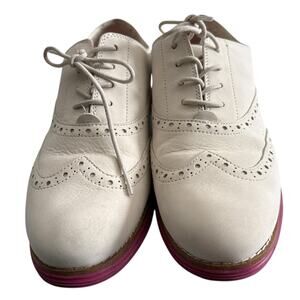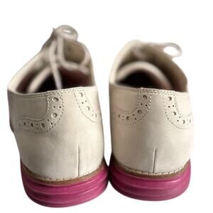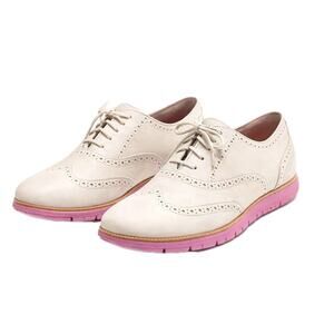 Cole Haan ZeroGrand Oxford Shoes Women 10 White Suede Pink Sole Lace Up Wingtip