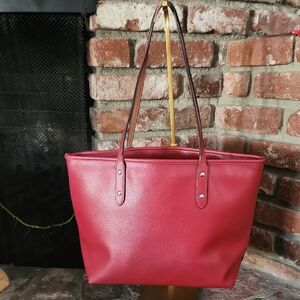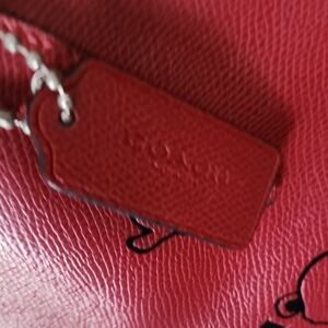 Authentic Coach x Snoopy Peanuts collaboration leather tote in a vibrant red color featuring the iconic Snoopy graphic. Fun yet functional design with smooth leather construction and classic Coach branding. A collectible collaboration piece perfect for everyday use or fans of Snoopy and Peanuts.