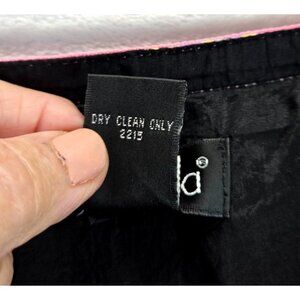 Vintage skirt by Rafaella. Aline cut with double stitched panels and side zipper. Floral pattern with pink ribbon accent and black background color. Fully line in solid black. Excellent condition.