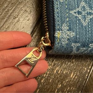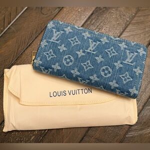 Chic denim large wallet with classic monogram pattern. Ideal for daily essentials. This wallets it’s master quality, 10/10 amazing quality and materials.