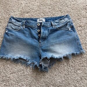 PAIGE Emmitt Blue Denim Frayed Shorts with Button Fly. Size 28