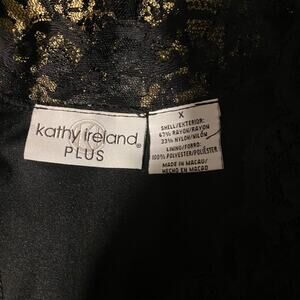 Kathy Ireland Plus Black Gold Lace V-Neck Top Size X Long Sleeve Pullover Top