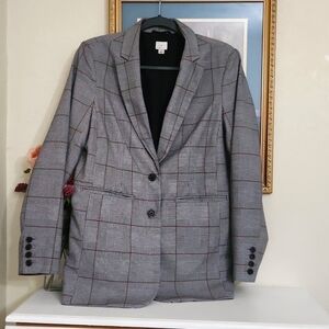 Double Button Blazer Size Medium Career Contemporary Preppy Plaid Glam Formal