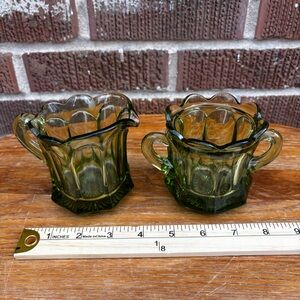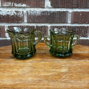 Imperial Glass Old Williamsburg open sugar and creamer set verde green avocado Vintage
