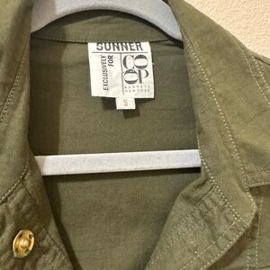 Elevate your wardrobe with this exclusive Sunner x Barneys New York Co-Op utility shirtdress in a versatile olive green. Perfect for a chic everyday look or safari-inspired styling.