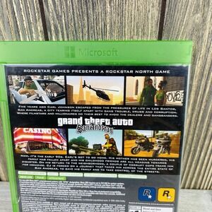 The product is a Grand Theft Auto: San Andreas video game for the Microsoft Xbox 360, Xbox One platform. Published by Rockstar Games, the game allows players to start as a gang member on the inner-city streets and rise to power in the corrupt state known as San Andreas. With a mature rating, the game features action and adventure in three west coast cities, each the size of Grand Theft Auto: Vice City. Players can visit gyms, restaurants, and the barber, adding to the immersive gameplay experience in the USA.