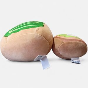 Charming avocado plush duo. Soft and huggable. Perfect for playtime. The NWT 8" Daisuke Squishmallow with a 6" Avocado Toast & Egg ( has no tag on 6" Squishmallow) Lot Bundle by Jazwares is a fun and colorful plush toy set perfect for children ages 3 and up. The small size of the Avocado Toast and Egg plush pieces make them easy to handle and play with, while the machine washable feature ensures easy cleaning. With its cute design and brand recognition from Squishmallows, this bundle is sure to be a hit with young fans of the popular character family.