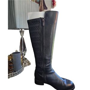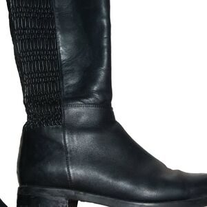 Blondo chic leather black boots with textured detail along the back calf. Has a bit of a stretch. Ideal for any occasion. Size 8. Very nice used condition with very soft quality leather. Please look at the pictures closely for signs of wear along the hell and rubber portion of foot.