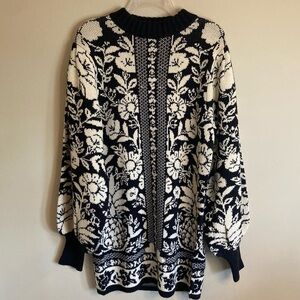 NEW FARM Rio Black Pineapple Garden Mini Sweater Dress Tunic Floral Knit Size S